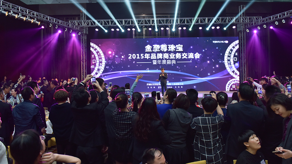 2015 年 12 月 3 日,金至尊品牌商業(yè)務(wù)交流 會暨年度盛典在深圳市羅湖區(qū)君悅酒店盛大舉行。 眾多國內(nèi)知名品牌商、新聞媒體人物、行業(yè)知名 人士齊聚一堂,分享行業(yè)發(fā)展經(jīng)驗(yàn),探討產(chǎn)業(yè)發(fā) 展趨勢。品牌產(chǎn)品形象代言人陳嘉桓,全能藝人 王祖藍(lán)也來到現(xiàn)場。金至尊珠寶產(chǎn)品在模特的專 業(yè)展示下熠熠生輝,將整個晚會推向高潮,也增 添了濃厚的時尚氣息。